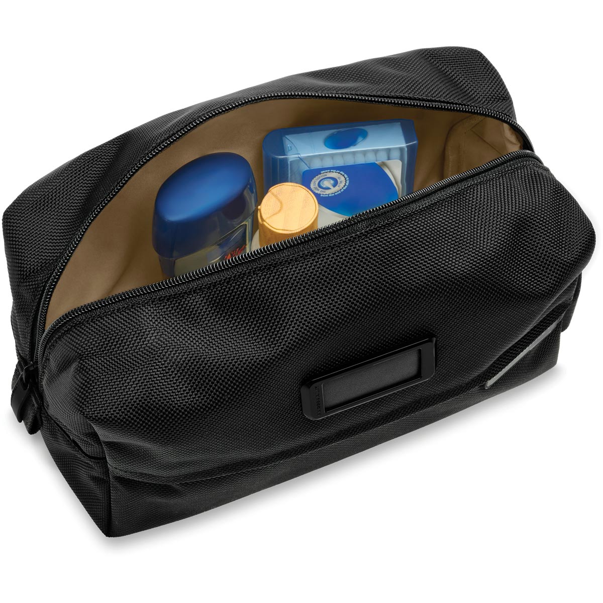 This Briggs & Riley Baseline Everyday Essentials Kit is designed to keep your travel accessories organized. It's versatile enough to store full size bottles or small electronic accessories. Its intuitive side pocket can keep your essentials at your fingertips.