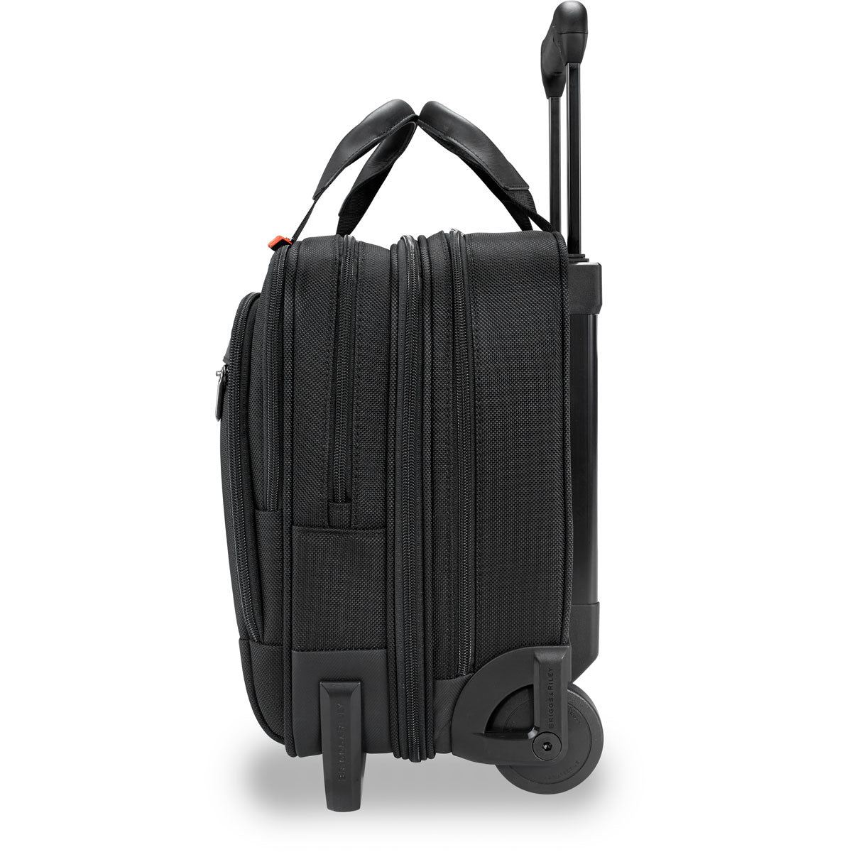 - Ergonomic Outsider®handle grip-Interlocking handle system allows bag to stack atop any Briggs & Riley Upright