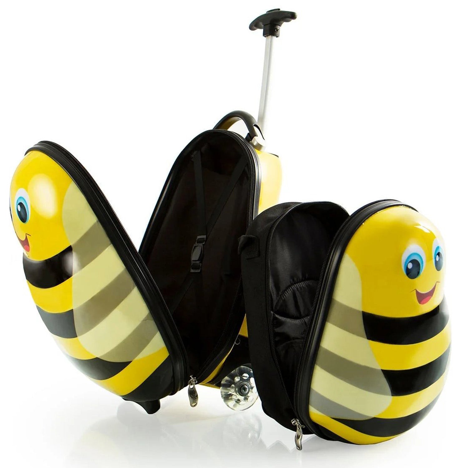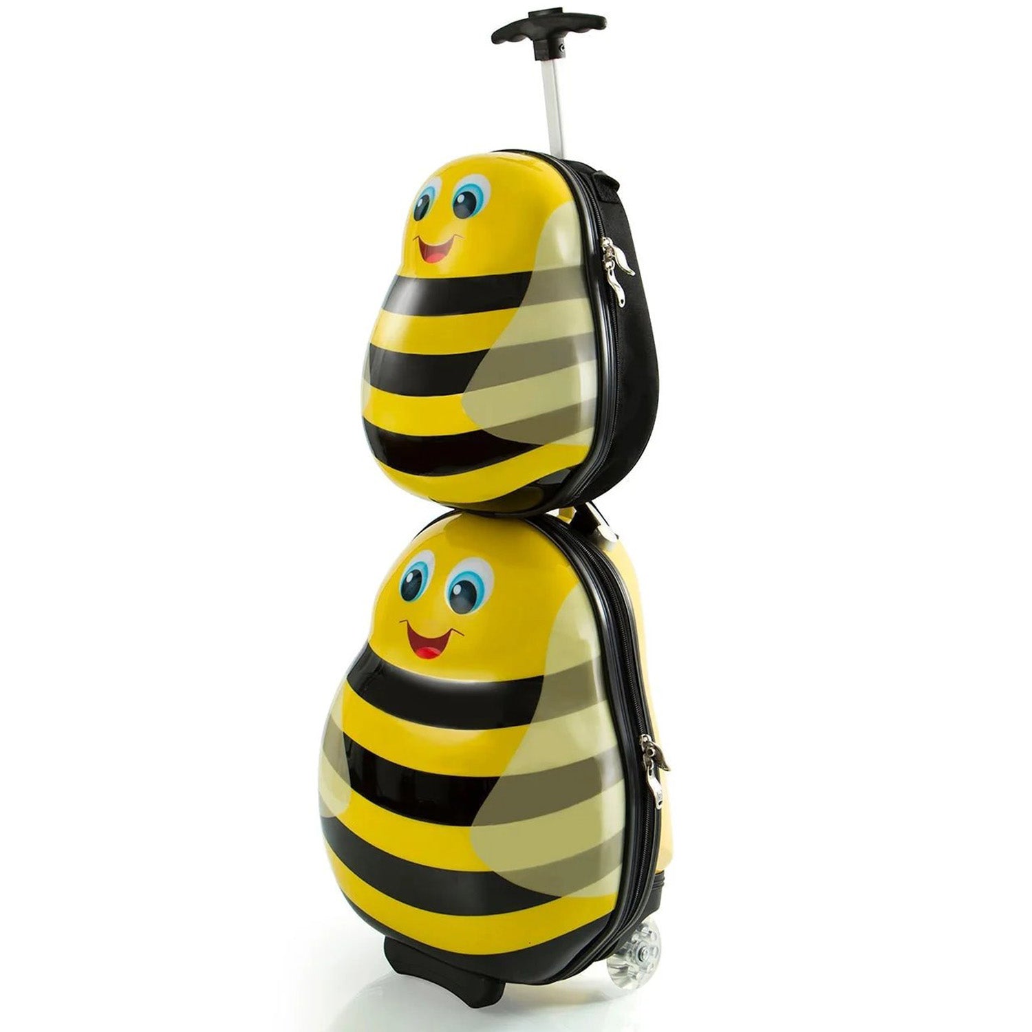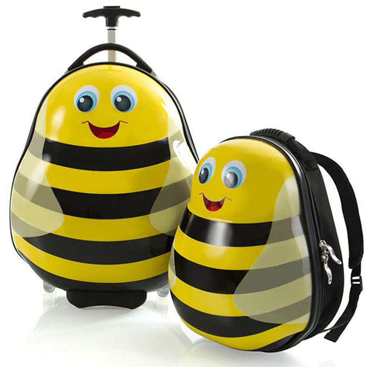 The Heys Travel Tots Bumble Bee Luggage & Backpack Set was created by Heys with the unique characteristics of children in mind, incorporating several design features that benefit children. With the luggage only weighing in at a mere 3.5 lbs., children can wheel these fun cases around, as they also feature our inline skate wheels that make rolling even smoother.