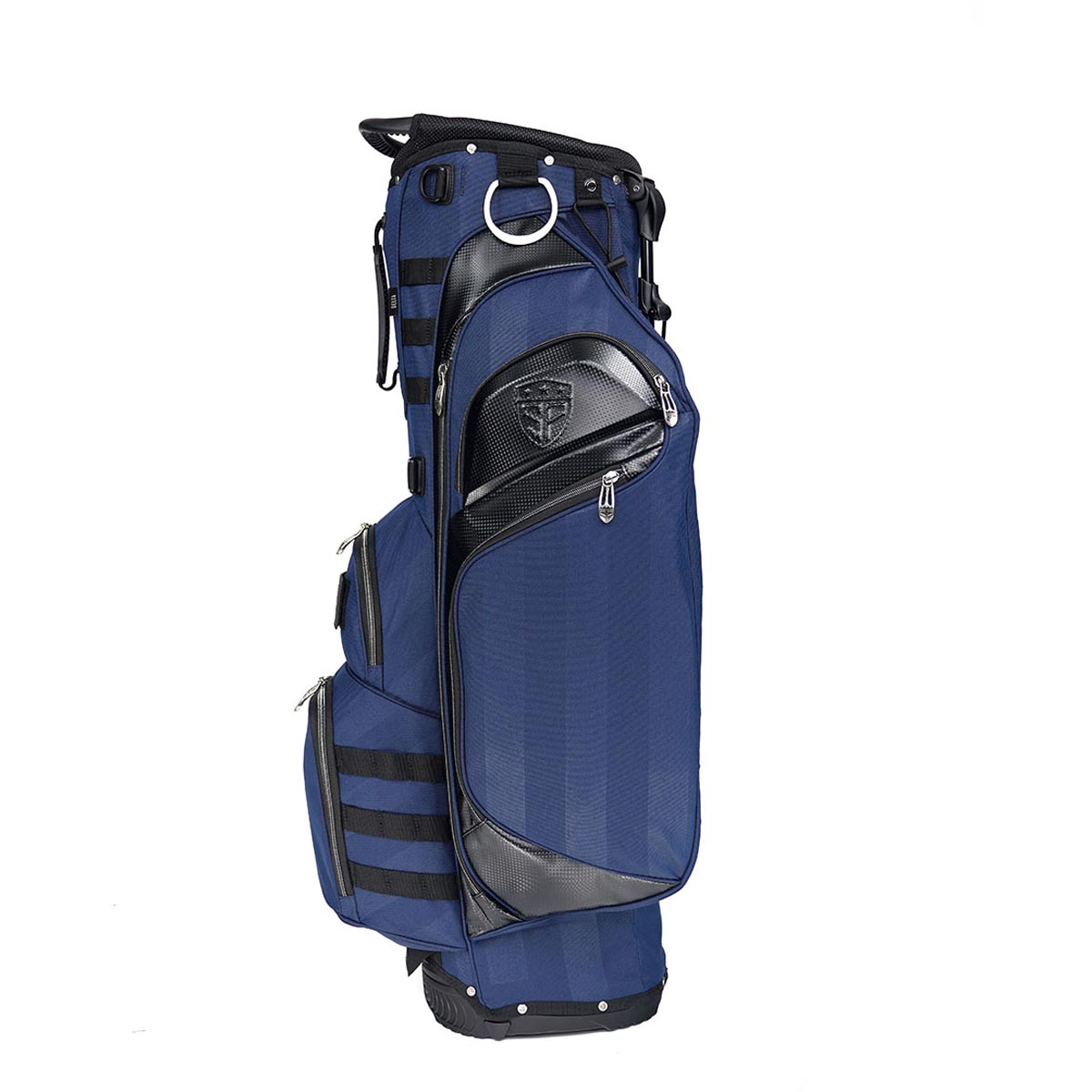 Exceptionally versatile whether you pack it or push it, the 4lb Tier 1 Stand Bag is equipped with a feature set for either operation. When packing, the Subtle Patriot Strap automatically adjusts to custom fit any body type and continuously re-distributes the weight evenly to both shoulders. While strapped on, you’ll enjoy perfect access to your distance measuring device with a self-sealing security closure and an insulated hydration pouch. When pushing, the typical, impeding foot pedal is eliminated with the flex-foot base, providing a more stable fit on the cart. In either case, the hard shell, fleece line valuable pocket will protect your cell phone screen, electronics or other valuables from accidental damage. Don’t miss the hidden, padded “carry” pocket that allows extra protection for more private items and if 9 pockets aren’t enough, feel free to add storage through use of the Molle System.